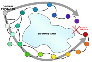 في النوع الحلقي يحدث تدفق جيني بين المجموعات المجاورة لكن في نهايات "الحلقة" لا يمكن التكاثر