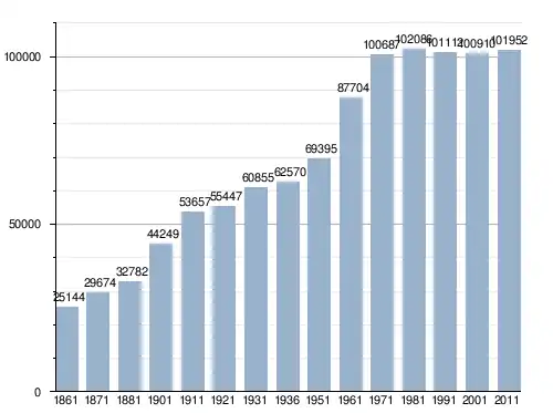 في سنة 1861 بلغ عدد السكان 25٬144 نسمة، وتطور العدد ليصل في سنة 2011 لـ 101٬952 نسمة.
