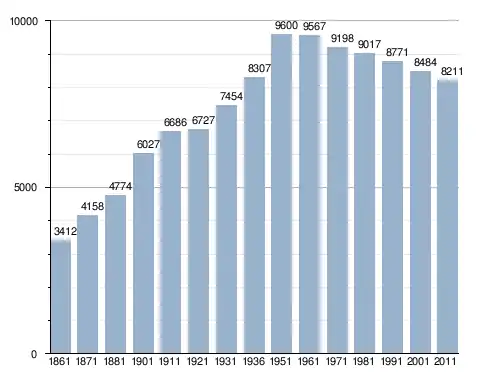 في سنة 1861 بلغ عدد السكان 3٬412 نسمة، وتطور العدد ليصل في سنة 2011 لـ 8٬211 نسمة.