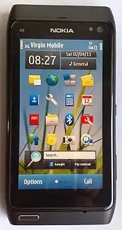 ![]() نوكيا N8 هو أول جهاز يعمل بنظام تشغيل سيمبيان^3 | ||||