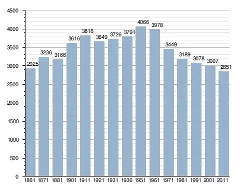 في سنة 1861 بلغ عدد السكان 2٬925 نسمة، وتطور العدد ليصل في سنة 2011 لـ 2٬851 نسمة.