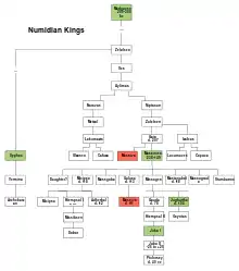 ![]() المملكة النوميدية عام 150 ق.م بعد توحيد. | |||||||||||||||||||||||
