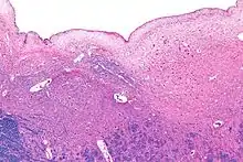 صورة مجهريّة للقسم الخلفي من الجزء المفتوح من النخاع المستطيل، تُظهر البطين الرابع (في قمة الصورة) و نواة العصب تحت اللسان (في الوسط و اليسار) و النواة المحركة الظهرية للعصب المبهم (الوحشي و اليمين).