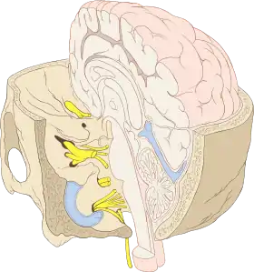 ![]() الأعصاب القحفيّة كما تجتاز قاعدة الجمجمة الأعصاب القحفيّة كما تجتاز قاعدة الجمجمة | |