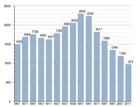 في سنة 1861 بلغ عدد السكان 1٬500 نسمة، وتطور العدد ليصل في سنة 2011 لـ 974 نسمة.