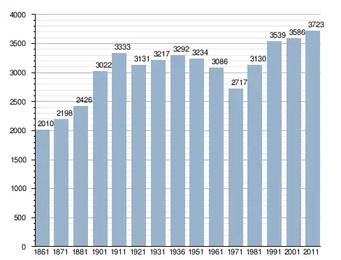 في سنة 1861 بلغ عدد السكان 2٬010 نسمة، وتطور العدد ليصل في سنة 2011 لـ 3٬723 نسمة.
