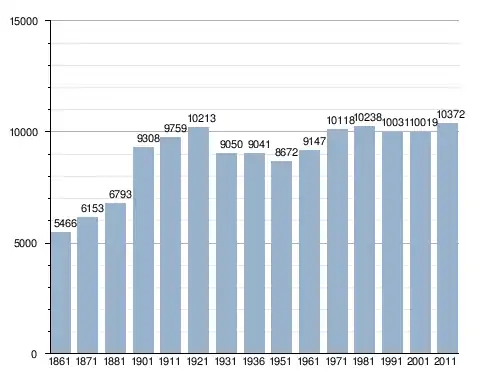 في سنة 1861 بلغ عدد السكان 5٬466 نسمة، وتطور العدد ليصل في سنة 2011 لـ 10٬372 نسمة.