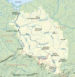 ![]() Oder basin, Nysa Kłodzka in red حوض نهر أودر، نيس الشرقي ظاهر باللون الأحمر