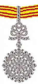 - شارة في شكل شمس ذات 12 شعاعا مرصعين بالألماس أو الياقوت، تعلوها عقدة من الألماس أيضا.