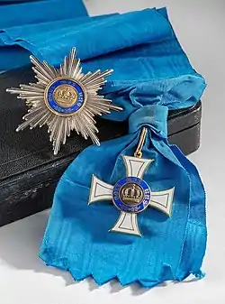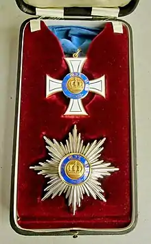 - الصليب الأعظم - شارة الصليب الأعظم كبيرة نسبيا وتلبس معلقة من وشاح يلبس من الكتف اليمنى، بالإضافة إلى رصيعة ثمانية الأضلاع يتم تثبيتها على الجانب الأيسر من الصدر؛