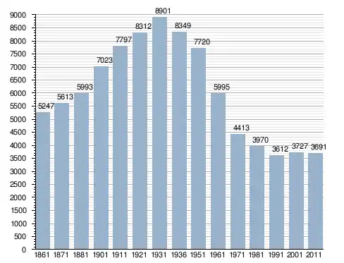 في سنة 1861 بلغ عدد السكان 5٬247 نسمة، وتطور العدد ليصل في سنة 2011 لـ 3٬691 نسمة.