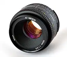 في عام 1933، سوقة نيكون أول عدسة كاميرا خاصة بها تحت اسم العلامة التجارية نيكور، و هي عدسة ايرو-نيكور (Aero-NIKKOR) للتصوير الجوي التي استخدمة لرسم الخرائط من قبل الجيش ولان رسم الخرائط يحتاج إلى دقة كبيرة فأن عدسة ايرو-نيكور تم صنعها باليد لضمان دقة العدسة.