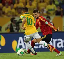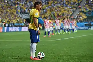 نيمار دا سيلفا سانتوس جونيور (تلفظ برتغالي: /nejˈmaʁ dɐ ˈsiwvɐ ˈsɐ̃tus ˈʒũɲoʁ/؛ مواليد 5 فبراير 1992) المعروف باسم نيمار أو نيمار جونيور. هو لاعب كرة قدم برازيلي، يلعب في مركز الهجوم في صفوف نادي باريس سان جيرمان الفرنسي ومنتخب البرازيل لكرة القدم.[15] يعتبر أحد أفضل اللاعبين في العالم، يعرف بالمهارة العالية، المراوغة، السرعة، الابتكار، والقدرة على اللعب بكلتا القدمين.[15][16]