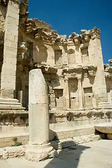 مثلاً النمفيوم في جرش الأردنية، شيد في 191 ميلادي. وهي أصلا نافورة منمقة برخام على واجه المستوى الأدنى، ورسمت بالجص على الطابق العلوي، مسقوفة بنصف قبة، مُشكِلة مِحراب عملاق. تتدفق المياه من افواه سبعة رؤس أسود منحوتة وتسقط في أحواض صغيرة بجانب الرصيف.