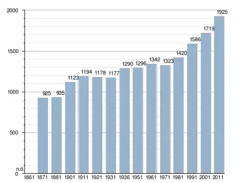 في سنة 1871 بلغ عدد السكان 925 نسمة، وتطور العدد ليصل في سنة 2011 لـ 1٬925 نسمة.