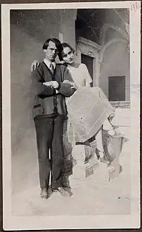 ![]() نينا بيربيروفا مع زوجها الشاعر فلاديسلاف خوداسيفيتش في سورينتو عام 1925 | |