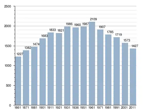 في سنة 1861 بلغ عدد السكان 1٬227 نسمة، وتطور العدد ليصل في سنة 2011 لـ 1٬427 نسمة.