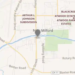 - "صفحة نيو ميلفورد (إلينوي) في GeoNames ID". GeoNames ID. اطلع عليه بتاريخ 6 مارس 2021. الوسيط