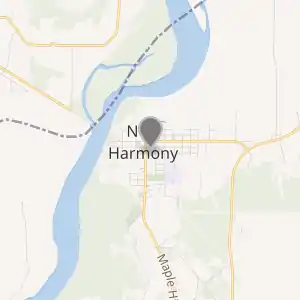 - "صفحة نيو هارموني في GeoNames ID". GeoNames ID. اطلع عليه بتاريخ 5 مارس 2021. الوسيط