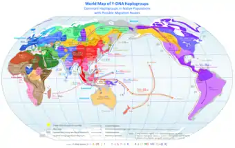 - Q1a3a علامتها (M3) نموذجي عند الأمريكيون قدماء ولكن أيضا وجد بنسب قليلة في أوروبا وعبر شمال آسيا