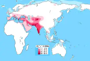 - الطفرات L1:a (M27, M76, P329) الهند, سريلانكا; باكستان, جنوب إيران والسعودية (توجد بقلة); أوروبا (توجد بقلة )