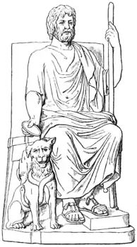 هاديس كلمة يونانية معناها الحرفي: "ما لا يُرى"، أو "ما خَفي على الأبصار". هو إله العالم السفلي في أساطير اليونان، والرومان، ابن کرونوس وريا، وشقيق ديميتر، وهيرا، وهستیا وزیوس، وبوسيدون. عندما ولد هادیس ابتلعه أبوه کرونوس ثم أجبره زیوس[2] بعد ذلك أن يتقيأه، عندما خدعه بمساعدة الربة ميتس التي كانت في البداية زوجة لزيوس. وعندما انهزم کرونوس على يد أبنائه الثائرين الثلاث: زیوس، وبوسیدون، وهادیس - أجرى الآلهة الثلاثة قرعة على جزء الكون الذي ينبغي أن يحكمه كل منهم، فكان العالم السفلي من نصيب هادیس. ويصور هاديس كشخص عابس، قاس، شديد الصرامة في عقاب الجناة، ولكنه لا يصور أبدأ كشخصية شريرة. فشخصية الشيطان لا وجود لها في الأساطير اليونانية أو الديانة اليونانية.[3][4][5][6]