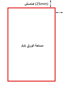 نموذج من مساحة ورقة A4 حول حدود الهامش.