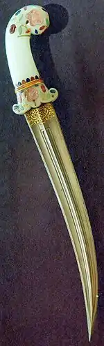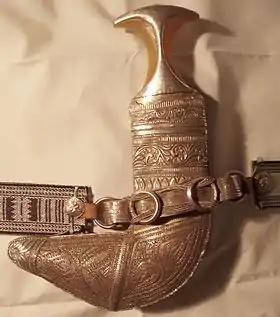 خنجر ( (بالعربية: خنجر)، (بالفارسية: خونگر)، (بالتركية: Hançer) ، (بالبوسنوية: Handžar) خنجر تقليدي نشأ في سلطنة عمان. حيث ارتداه الرجال في المناسبات الاحتفالية، إنه سيف منحني قصير الشكل يشبه الحرف "J" على شكل خطاف. يمكن تصنيعه من مجموعة متنوعة من المواد المختلفة، اعتمادًا على جودته الحرفية. إنه تذكار شعبي بين السياح ويباع في الأسواق في جميع أنحاء المنطقة. يعد رمزًا وطنيًا للسلطنة، يظهر الخنجر على الشعار الوطني للبلاد وعلى الريال العماني. يتم استخدامه أيضًا في الشعارات والصور التجارية من قبل الشركات التي تتخذ من عُمان مقراً لها.