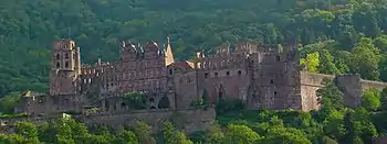 قصر هايدلبرغ هو أهم معلم في المدينة وموقعه مشرف عليها، شيد على ضفاف نهر نيكار. لا زالت بعض الأجزاء القديمة منه والتي تعود إلى قرون خلت شاهدة على أساليب العمران أثناء القرون الوسطى وعصر النهضة. يرجع تاريخ بناء القصر إلى القرن الثامن للميلاد (شارلماني)، وتعود عواميد الغرانيت الأربعة والمنتصبة في باحة القصر إلى هذه الفترة الأولى. يحتضن جناح "أوتو هاينريش" متحفا للصيدلة. في أحد الأقبية العديدة المتواجدة في الطوابق التحت أرضية، يوجد برميل هايدلبرغ الشهير (Großes Fass)، ويعتبر رمزاً لصناعة الخمور في المدينة.