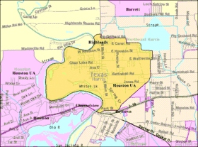 - "صفحة هايلاندز (تكساس) في GeoNames ID". GeoNames ID. اطلع عليه بتاريخ 5 مارس 2021. الوسيط
