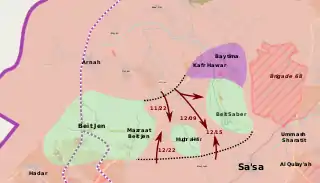 ![]() الحالة في بيت جن اعتبارا من 22 ديسمبر سيطرة الحكومة السورية سيطرة الجيش السوري الحر وتحرير الشام | |||||||