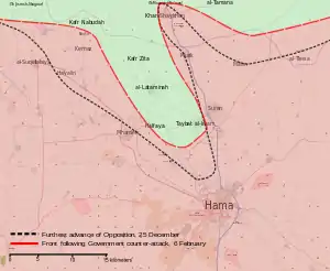 ![]() الخطوط الأمامية أثناء وبعد الهجوم سيطرة الحكومة السورية سيطرة المعارضة | |||||||