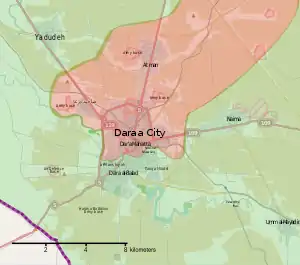 ![]() خريطة للحالة في مدينة درعا، في 21 أبريل 2017 | |||||||