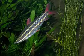 تعتبر هذه السمكة كبيرة الحجم إلى حد ما. توجد غالبًا في المياه الضحلة ذات التيارات القوية وتتغذى على الطحالب. موطنها هو أمريكا الجنوبية وتفضل الماء الحمضي قليلاً ي. يصل طولها إلى حوالي 4 3/4 بوصات وهي نشيطة للغاية. حساسة للغاية للظلال ، تحب القفز ، وتميل إلى أن تكون عدوانية قليلاً. تكون أكثر آمانا عند الاحتفاظ بها كسمكة واحدة أو في مجموعات تتكون من أكثر من 6 سمكات. [1]