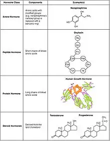 للمزيد من المعلومات: قائمة هرمونات البشر. تقع هرمونات الفقاريات ضمن أربع فئات كيميائيّة رئيسيّة: