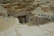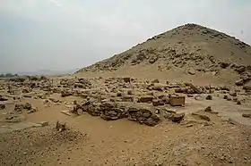 يوجد المعبد الجنائزي بجوار الوجه الشرقي للهرم. يحيط بقاعة مدخل المعبد مبنيان كبيران. غرب الصرح الجنوبي ، تم اكتشاف مبنى كبير به عدة غرف ضيقة طويلة. تم الحفاظ على مخطط المبنى بواسطة الكتل التأسيسية ، لكن هيكله لم يتم الحفاظ عليه بشكل جيد ، وفقدت أرضيته ، ربما لصوص الحجر. لا يوجد للمبنى معاصرون في مجمعات هرمية أخرى المملكة القديمة ، ولا يوجد مرافق على الجانب الشمالي. وظيفتها غير معروفة. تم تدمير المعبد الجنائزي في الغالب خلال الفترة الانتقالية الثانية ، واستخدم كموقع للدفن في الأسرة الثامنة عشر. في الزاوية الجنوبية الشرقية للهرم ، يوجد هرم عبادة صغير في سياج. لها بنية تحتية على شكل حرف T.