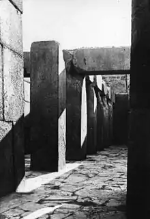 يمتد الجسر بطول 494.6 متر (541 ياردة) إلى معبد الوادي ، وهو مشابه جدًا للمعبد الجنائزي. وهي مبنية من كتل مغليثية مغلفة بـ الجرانيت الأحمر. مربع الأعمدة للممر على شكل حرف T مصنوع من الجرانيت الصلب ، وتم رصف الأرضية بـ المرمر. تم بناء الجزء الخارجي من كتل ضخمة ، بعضها يزن أكثر من 100 طن. [13]