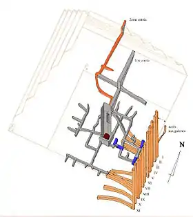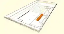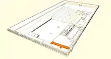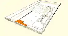![]() Plan du complexe funéraire de Djéser (d'après Cécil M. Firth) Sud → Nord |