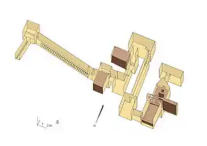 من مجمع الهرم، يبدو أن معبد الوادي و المعبد الجنائزي والجدران المحيطة لم تترك أي أثر. تم اكتشاف جزء كبير فقط من الجسر، بالإضافة إلى حجر عائق آخر، من المحتمل أن يكون مهجورًا بسبب تغيير تصميم الهرم.