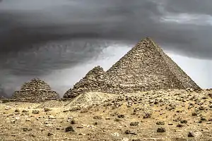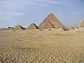 منظر هرم منقرع وأهرامات الملكات الثلاثة من جنوب هضبة الجيزة
