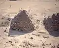 يعتبر الهرم الثالث بالقياس أيضًا هرم ملكة غير مكتمل. ومع ذلك ، فإن استكشافه لم يسفر عن أي تابوت. من ناحية أخرى ، فإنه يمثل جانبًا أكثر تدهورًا بسبب محاولة التدمير التي بدأت أثناء الحملة الفرنسية على مصر. سعياً لدراسة بناء الأهرامات عن طريق تفكيكها ، بدأ العلماء في ذلك الوقت هذا العمل عن طريق عبور النصب التذكاري مباشرة ، على أمل عبث اكتشاف غرفه السرية. توقفت أعمال التدمير هذه مع فشل حملة نابليون بونابرت التي هزها تدخل الأتراك والإنجليز. ظل هذان الهرمان الأخيران مجهولين حتى الآن.