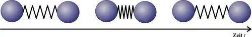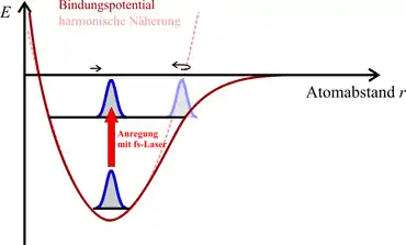 يمكن تصور الحالة شبه الكلاسيكية كجزيئ مكون من ذرتين مثل جزيئ الهيدروجين H2 حيث نثير اهتزازه بواسطة تصليت شعاع الليزر عليه. .[2] وقد وضحنا أعلاه أن اهتزاز جزيئ مكون من ذرتين يمكن وصفه بتقريب مقبول كهزاز توافقي. ويبين الشكل التالي ما يحدث لأحد الذرتين في الجزيئ: