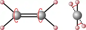 وفيه تعوج الرابطة الثنائية وتهتز ذرتين من ذرات الهيدروجين بطريقة محدرجة (فتلية) ضد بعضهما.