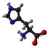 الهستيدين (بالإنجليزية: histidine) هو حمض أميني من النوع ألفا تكون السلسلة الجانبية فيه على شكل حلقة خماسية يشكل النيتروجين ركنين من أركان هذه الحلقة وتحمل هذه السلسلة الجانبية شحنة موجبة على إحدى ذرتي نيتروجين الحلقة لذلك فهو يصنف على أنه من الحموض الأمينية موجبة الشحنة. وللحمض الصيغة الجزيئية C6H9N3O2 . وله دور في تكوين الناقل العصبي هستامين عن طريق نزع مجموعة الكربوكسيل من هذا الحمض وبذلك فلهذا الحمض دور غير مباشر في تحفيز تفاعلات الالتهاب على الحدوث لأنه ينتج الهستامين الذي يقوم بهذه الوظيفة الحيوية في الجسم. ويعتبر الهيستيدين من الأحماض الامينية التي لا يستطيع جسم الإنسان إنتاجها مباشرة عن طريق الجينات مثل بعض الأحماض الأمينية التي تنتج مباشرة عن طريق الترجمة في الرايبوسومات خلال عملية تكوين البروتين داخل خليه جسم الكائن الحي.