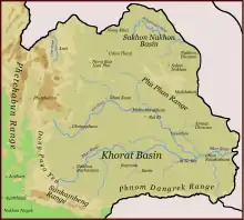 هضبة كورات التي تقع في منطقة اسيان في شمال شرق تايلاند , تبلغ متوسط ارتفاع الهضبة 200 متر وتغطي مساحة 155000 كيلومتر مربع