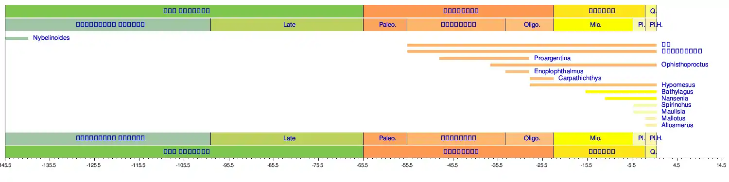 - قاعدة الأسماك (2006): [<a href="http://www.fishbase.org/Summary/OrdersSummary.cfm?order=Osmeriformes">http://www.fishbase.org/Summary/OrdersSummary.cfm?order=Osmeriformes</a> Order Osmeriformes]. Version of 2006-OCT-09. Retrieved 2009-SEP-28.