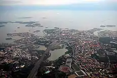 وسط هلسنكي، نقطة محورية في منطقة العاصمة، من السماء.