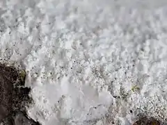 | السحنة البلورية | Platy crystals; compact chalklike masses |