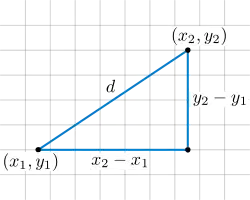 لتكن قطعة مستقيمة حيث و معرفتين في المستوى. المسافة بين النقطتين و هي :