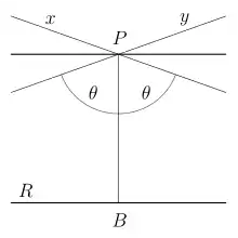 خطوط من خلال نقطة معينة P ومقارب إلى خط R